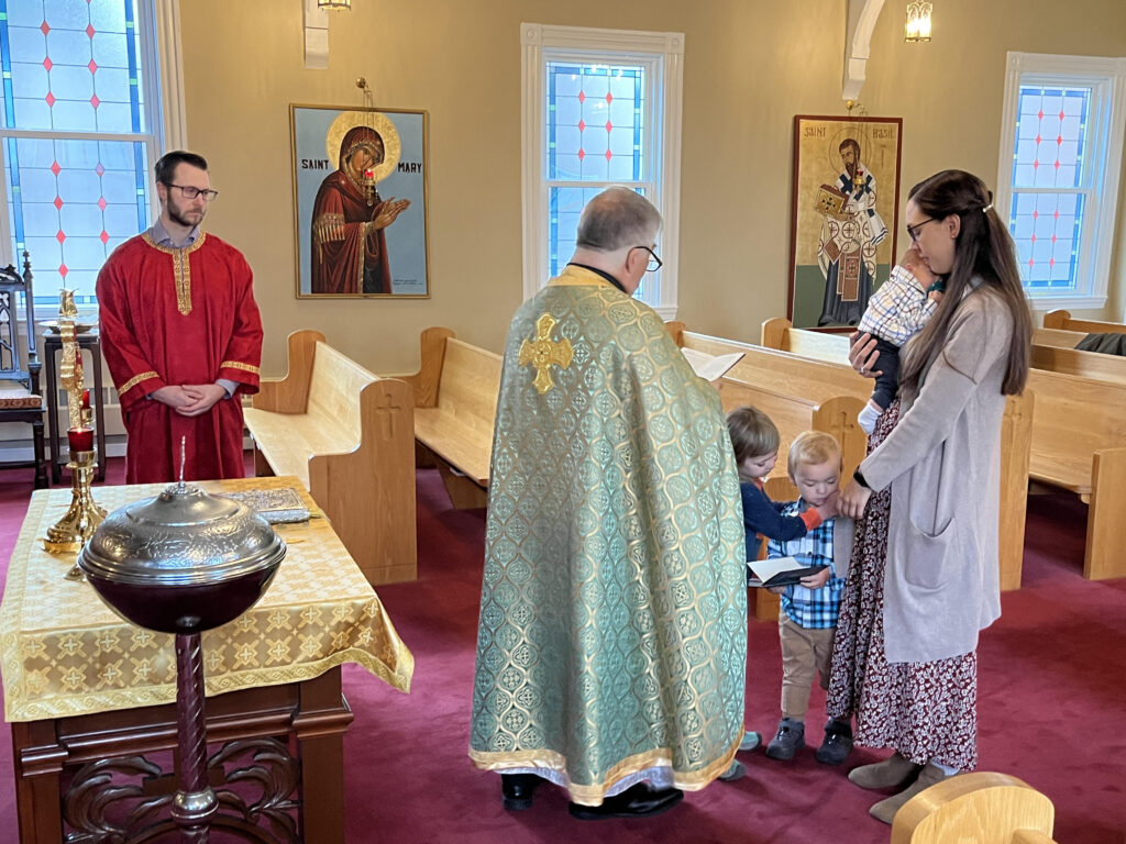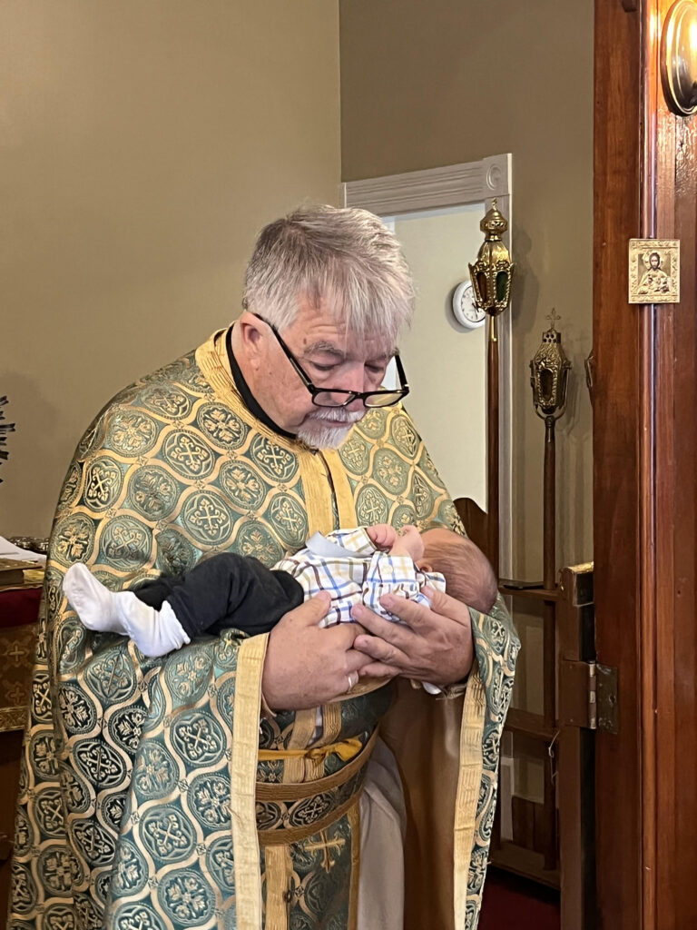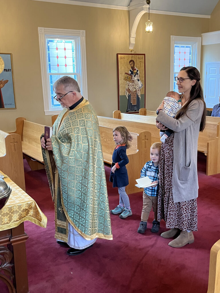 Prior to the Divine Liturgy on Sunday 10/02/2022, the churching ceremony was held for newborn baby Joseph Nielsen and family. Churching is a service of thanksgiving and blessing of the mother and her child when they return to the church after childbirth. It is reminiscent of the Old Testament ceremony of purification (Lev. 12: 2-8) and the presentation of Jesus at the Temple (Luke 2: 22-29). Welcome to our parish Joseph!